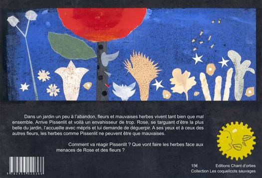 Dans un jardin un peu à l'abandon, fleurs et mauvaises herbes vivent tant bien que mal ensemble jusqu'à l'arrivée de Pissenlit, un envahisseur de trop. A la fin de l'album figure un glossaire des herbes folles expliquant leurs qualités culinaires, médicinales et horticoles.