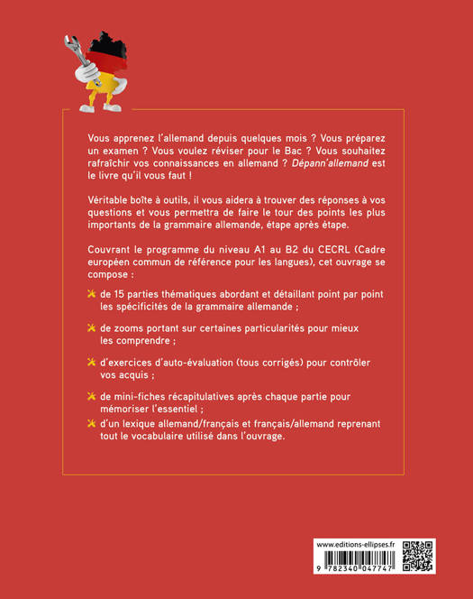 Véritable boîte à outils, cet ouvrage présentant et expliquant, étape par étape, les fondamentaux de la grammaire allemande, est idéal pour les débutants, les faux débutants ou encore pour toute personne ayant besoin de reprendre les bases de la grammaireallemande ou de contrôler ses connaissances.