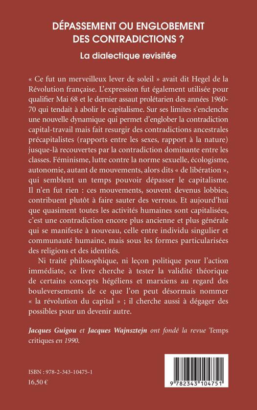 "Ce fut un merveilleux lever de soleil", avait dit Hegel à propos de la Révolution française. L'expression fut également utilisée pour qualifier Mai 68 et le dernier assaut prolétarien des années 1960-70 qui tendait à abolir le capitalisme. Ni traité philosophique, ni leçon politique, cet ouvrage cherche à tester la validité théorique de certains concepts hégéliens et marxiens au regard des bouleversements de ce qu'on peut désormais nommer "la révolution du capital". Il cherche aussi à dégager des possibles pour un devenir autre.