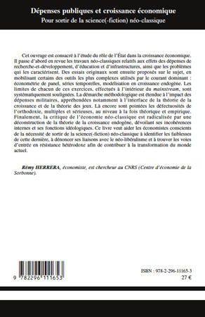 Cet ouvrage est consacré au rôle de l'Etat dans la croissance économique. Il veut aider les économistes conscients de la nécessité de sortir de la science(-fiction) néo-classique à identifier les faiblesses de cette dernière, à dénoncer ses liaisons avec le néo-libéralisme et à trouver les voies d'entrée en résistance hétérodoxe afin de contribuer à la transformation du monde actuel.