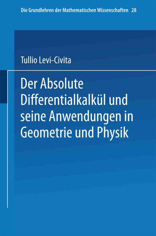 5. Der Absolute Differentialkalkül Und Seine Anwendungen in Geometrie Und Physik