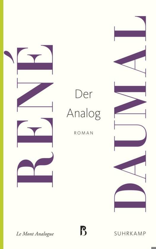 Der erste Roman René Daumals, eines Autors, der in Rausch und Nahtoderfahrung Erkenntnis suchte, hieß Das Große Besäufnis. Seinen zweiten Roman, Der Analog, beschrieb er selbst als das Gegenstück, als »Ausblick in eine Welt, in der es das Wahre, Gute, Schöne gibt.« Daumal verlässt 1940 mit seiner jüdischen Ehefrau Vera Milanova das von der deutschen Wehrmacht besetzte Paris. Nach Stationen in den Pyrenäen und Marseille, lässt sich das Paar 1943 in den Alpen nieder, wo Daumal die Arbeit am Analog fortsetzt. Der Analog muss jedoch unvollendet bleiben und erscheint posthum. Der Autor stirbt mit 36 Jahren in Folge einer Tuberkulose Erkrankung und sein Roman schließt mit einem Komma. Der Leser also muss die letzten Schritte zum hoffnungsfrohen Ausblick eigenständig erklimmen.