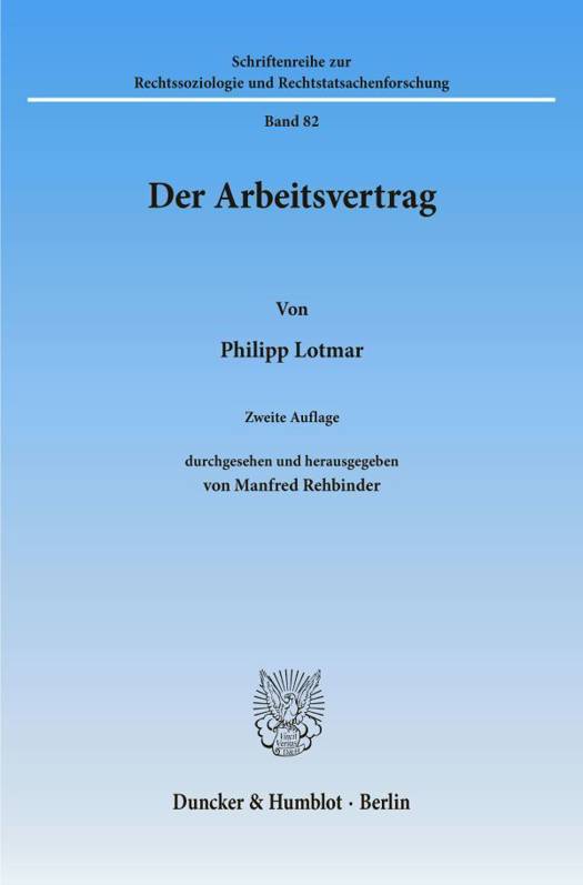 Wenn hier Lotmars Arbeitsvertrag, eine "Pioniertat der Rechtswissenschaft" (Hans Hattenhauer), vom Verlagshaus des Originals in einer Neuausgabe wieder vorgelegt wird, so geschieht dies in der Absicht, mit einer durchgreifend modernisierten Gestaltung diesem Klassiker der arbeitsrechtlichen Literatur wieder den Zugang zur aktuellen rechtswissenschaftlichen Diskussion zu eröffnen. Beabsichtigt ist mit anderen Worten die Vorlage eines Arbeitsmittels, das über den engen Kreis der Rechtshistoriker hinaus auch dem Dogmatiker des geltenden Rechts zur Verfügung steht, der willens ist, es im Sinne einer wissenschaftlichen Vertiefung zum Ausgangspunkt für seine Analysen des geltenden Rechts zu machen.