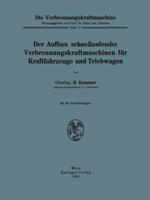 Der Aufbau Schnellaufender Verbrennungskraftmaschinen Für Kraftfahrzeuge Und Triebwagen