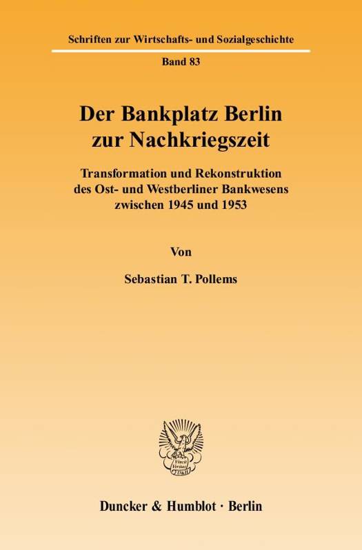 Internationale Bieter streiten in einem hitzigen Gefecht um die Berliner Bank, die Bankgesellschaft Berlin wird 2007 verkauft. Berliner Bankengeschichte von den letzten Kriegstagen bis in die Fünfzigerjahre ist ereignisreich, spannend und hochaktuell. Die sowjetische Alleinherrschaft nach der Eroberung sowie der Vier-Mächte-Status führten dazu, dass sich die Teilung Berlins in der Berliner Bankengeschichte konzentriert widerspiegelt. Transformation bzw. Rekonstruktion des Schlüsselsektors Banken in Ost- und Westberlin waren eng verzahnt mit der Spaltung der Wirtschafts- und Gesellschaftssysteme.Sebastian Pollems untersucht einen wirtschaftlichen Schlüsselsektor an einer geopolitisch sensitiven Nahtstelle. Quellen aus Archiven jenseits des Eisernen Vorhangs erlauben es, die Hintergründe alliierter Deutschlandpolitik neu zu interpretieren. Aus historischen Quellen und heutiger Sicht ensteht ein Bild damaliger Handlungs- und Entscheidungsalternativen, das die Zwangsläufigkeit der Spaltung neu hinterfragt.