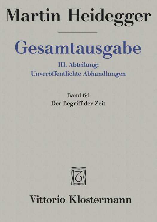 Der Band 64 der Gesamtausgabe enthält die bislang unveröffentlicht gebliebene hoch bedeutsame Abhandlung "Der Begriff der Zeit" aus dem Jahre 1924 sowie den im selben Jahr vor der Marburger Theologenschaft gehaltenen Vortrag gleichen Titels. Anlass für die Entstehung der Abhandlung war der 1923 erschienene Briefwechsel zwischen Wilhelm Dilthey und dem Grafen Paul Yorck v. Wartenburg. Daher ist auch der I. Abschnitt "Die Fragestellung Diltheys und Yorcks Grundtendenz" dem Briefwechsel selbst gewidmet. Das Mittelstück dieses Abschnitts ist unverändert in den 77 von "Sein und Zeit" übernommen worden. Die folgenden drei Abschnitte (II. "Die ursprünglichen Seinscharaktere des Daseins", III. "Dasein und Zeitlichkeit", IV. "Zeitlichkeit und Geschichtlichkeit") stehen in enger Entsprechung zum ersten und zweiten Abschnitt von "Sein und Zeit" und nehmen die Gedankenzüge der Ontologie des Daseins in deren Grundzügen vorweg. Da im IV. Abschnitt auch die Thematik des dritten Abschnitts "Zeit und Sein" aus dem ersten Teil und die Fragestellung des zweiten Teiles von "Sein und Zeit", die phänomenologische Destruktion der Geschichte der Ontologie, ausgesprochen werden, kann die Abhandlung "Der Begriff der Zeit" aus dem Jahre 1924 mit Fug und Recht als die Urfassung von Heideggers Hauptwerk "Sein und Zeit" (1927) bezeichnet werden.