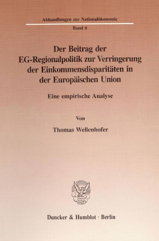 Ziel der vorliegenden Arbeit ist es, die institutionelle Entwicklung der EG-Regionalpolitik von ihren Ursprüngen an bis in die Gegenwart und die Veränderungen ihrer Konzeption im Laufe der Zeit im einzelnen aufzuzeigen sowie im Rahmen einer empirischen Analyse zu untersuchen, ob und in welchem Umfang die Strukturhilfen im Rahmen der EG-Regionalpolitik zu einer regionalen Angleichung der Lebensverhältnisse in der Europäischen Union beigetragen haben.