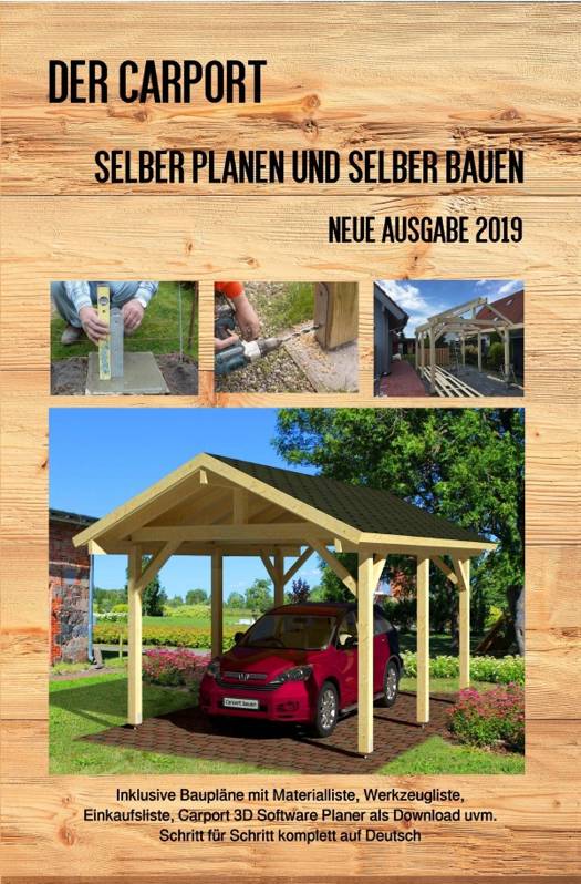 Der Carport - Selber planen und selber bauen Ausgabe 2019 als Taschenbuch - 232 Seiten. Inklusive Baupläne mit Materialliste, Werkzeugliste, Einkaufsliste, kostenloser Carport 3D Software Planer zum Download uvm.
