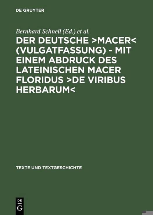 Das Werk, das zu den zentralen Texten der mittelalterlichen deutschen Medizinliteratur zählt, wird hier erstmals kritisch herausgegeben. Erläuterungen zum Text sowie ein Wörterbuch sollen helfen, den Text auch für nichtgermanistische Interessenten zu erschließen. Der Untersuchungsteil beginnt mit einem kurzen Abriß der Gattungsgeschichte der Kräuterbücher, wobei im Anschluß daran die dem deutschen »Macer« vorangehenden mittelalterlichen Kräuterbücher einzeln vorgestellt werden. Im Mittelpunkt der Studien steht die Darstellung der umfangreichen Text- und Überlieferungsgeschichte sowie vor allem die Analyse der Mitüberlieferung in den Überlieferungszeugen, die als eine kleine Literaturgeschichte der medizinischen Fachliteratur gelesen werden kann. Im Anhang werden die lateinischen Quellentexte, insbesondere »De viribus herbarum« des Macer Floridus nach der 1832 erschienen Edition von Choulant abgedruckt.