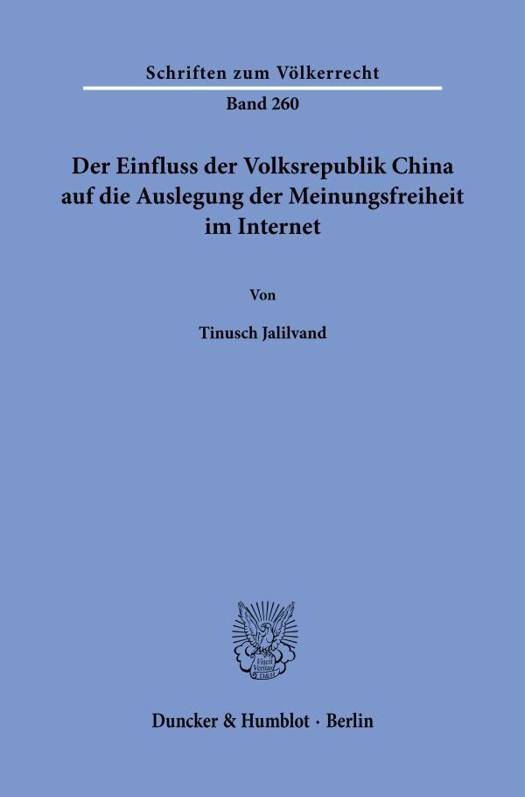 Die Arbeit widmet sich der Untersuchung der Auslegung der Meinungsfreiheit im Internet durch die Volksrepublik China und deren Einfluss auf die Auslegung dieses Menschenrechts im völkerrechtlichen Diskurs. Der Arbeit lag das Anliegen zugrunde, das Thema juristisch neutral und ohne Kritik an anderen Rechtsordnungen zu beleuchten. Es scheint wichtiger denn je, Verständnis für andere Rechtsordnungen und deren Adaption in vielen Staaten der Welt zu entwickeln, um den völkerrechtlichen Diskurs auf der Grundlage des geltenden Rechts zu führen. Dazu soll diese Arbeit einen Beitrag leisten.