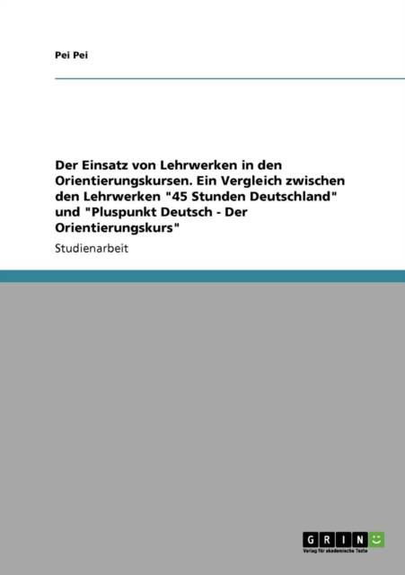 Studienarbeit aus dem Jahr 2010 im Fachbereich Didaktik für das Fach Deutsch - Deutsch als Fremdsprache, DaF, Note: 1,3, Universität Kassel (Deutsch als Fremd- und Zweitsprache), Veranstaltung: DaZ in Integrationskursen, Sprache: Deutsch, Abstract: Deutschland ist seit Jahren ein Land, das stark von Zuwanderung beeinflusst ist. Nach der Meinung des Bundesamtes für Migration und Flüchtlinge steht Integration logischerweise für Deutschland, sowohl heute als auch in der Zukunft, im Mittelpunkt. Der Orientierungskurs umfasst nach dem Curriculum für einen bundesweiten Orientierungskurs 45 Unterrichtseinheiten. Im Orientierungskurs handelt es sich um die deutsche Politik, Geschichte und Kultur. Ab dem 1. Januar 2009 müssen Teilnehmer des Orientierungskurses zum Abschluss den bundeseinheitlichen Orientierungskurstest schreiben. Das BAMF hat in dem regelmäßig aktualisierten Standardwerk eine fünfseitige Liste der zugelassenen Lehrwerke von August 2009 dargestellt. Die Kursträger und Lehrkräfte können sich für ein geeignetes Lehrwerk von der Liste zugelassener Lehrwerke für ihren Unterricht entscheiden. Im Mittelpunkt der Arbeit steht der Vergleich zwischen zwei Lehrwerken für den Orientierungskurs: 45 Stunden Deutschland und Pluspunkt Deutsch - Der Orientierungskurs. Hierbei werden verschiedene Kriterien zur Kritik von Lehrwerken zu Rate gezogen. Es soll überprüft werden, inwiefern die beiden Lehrwerke den praktischen Teil des Orientierungskurses erfüllen.