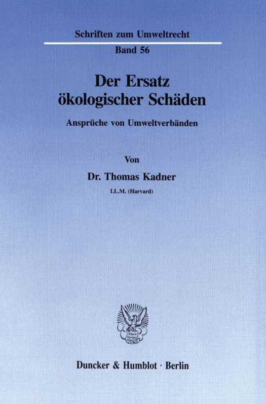 Ökologische Schäden werden vom geltenden Haftungsrecht nur unvollkommen erfaßt. Die Vorschläge, die für den Ausbau der zivilrechtlichen Ansprüche einzelner Geschädigter auf Ersatz ökologischer Schäden bislang gemacht wurden, bieten Verbesserungen im Detail, jedoch keine umfassende Lösung. Die herrschende Meinung in Deutschland favorisiert daher eine öffentlich-rechtliche Regelung des Ersatzes ökologischer Schäden. Angesichts des vielfach beklagten Vollzugsdefizits im öffentlichen Umweltrecht bestehen allerdings Bedenken dagegen, allein auf einen Ersatzanspruch der öffentlichen Hand zu vertrauen. Die vorliegende Arbeit untersucht, ob die Lösung des Problems - anstelle oder besser: in Ergänzung zu einer verstärkten öffentlich-rechtlichen Haftung - in einer Ersatzberechtigung von Umweltverbänden liegen kann (d. h. auf einer Mittelebene oberhalb individueller Anspruchsberechtigung und unterhalb einer rein öffentlich-rechtlichen Regelung).
