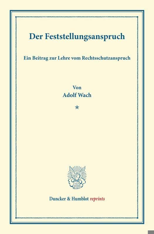 Ein Beitrag Zur Lehre Vom Rechtsschutzanspruch. (Sonderabdruck Aus Der Festgabe Der Leipziger Juristenfakultat Fur B. Windscheid Zum 22. Dezember 1888)
