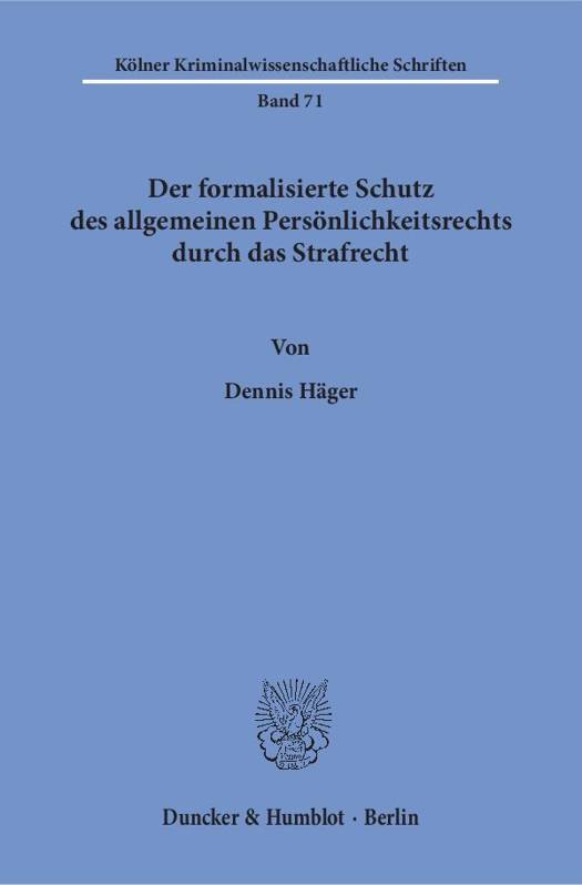 201, 201a, 202, 202a, 203 und 206 StGB unter Berücksichtigung der Auslegung in Rechtspraxis und Rechtslehre untersucht werden. Es wird gezeigt, an welchen Stellen dieser strafrechtliche Schutz lückenhaft, zu weitgehend oder praxisuntauglich ist. Schließlich wird im Wege eines Gesetzesreformvorschlags versucht, den Schutz des APR durch das Strafrecht zu optimieren.