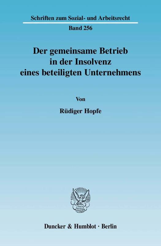 Rüdiger Hopfe behandelt ein Thema aus dem Schnittpunkt von Arbeits-, Insolvenz- und Gesellschaftsrecht. Ausgangspunkt ist der gemeinsame Betrieb mehrerer Unternehmen, über dessen Voraussetzungen trotz Anerkennung durch den Gesetzgeber wenig Klarheit besteht. Gegenstand der Untersuchung ist das Schicksal des gemeinsamen Betriebes in der Insolvenz eines der beteiligten Unternehmen. Dessen Fortbestand im Insolvenzverfahren führt dabei zu einem Konflikt zwischen dem auf das Vermögen des Insolvenzschuldners abstellenden Insolvenzrecht und den unternehmensübergreifenden Wirkungen des gemeinsamen Betriebes.