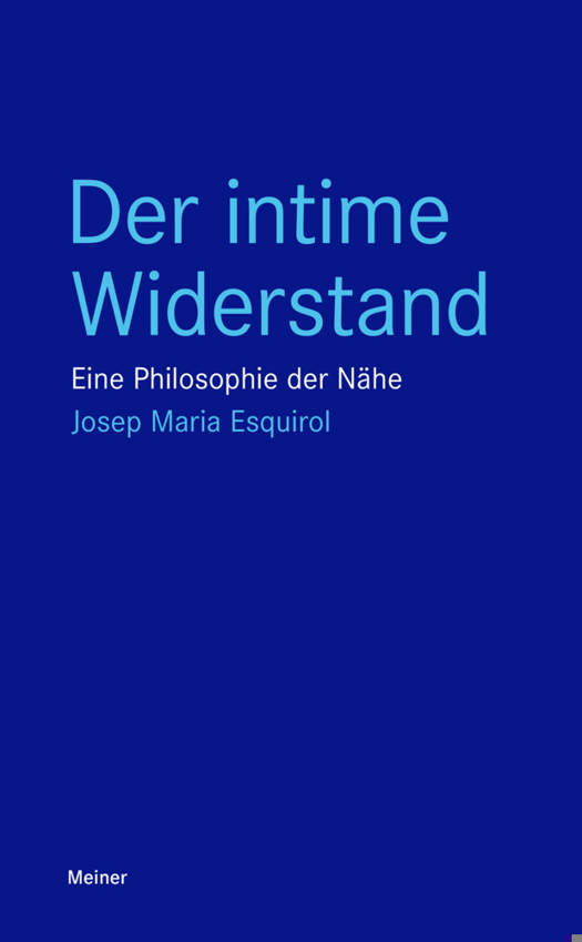 Das Intime wie auch das Nächste ist mit dem Zuhause verbunden, mit der Familie, dem alltäglichen Brot, dem Freund, den Büchern, den Träumen und der Luft, die man atmet ... Sein Gegenteil ist nicht die Ferne, sondern die Gleichgültigkeit: Der Himmel, durch ein Fenster betrachtet, kann Teil dieser Intimität sein, während etwas, das wir beinahe auf der Haut tragen, wie die Kreditkarte, die man gewöhnlich in der Brieftasche aufbewahrt, uns in Wirklichkeit sehr fremd sein kann. Oft ist Leben als Projekt, Freiheit, Entscheidung oder Selbstverwirklichung verstanden worden, als eine Art zentrifugale und zur Schau stellende Bewegung. In diesem Essay geht es darum, wie eine solche Bewegung sich mit einer anderen verknüpft, die Esquirol als Widerstand, Zuflucht und den Rückzug in die Nähe bezeichnet. »Intimer Widerstand« meint keinerlei Individualismus oder Narzissmus, sondern eher Zurückhaltung und Generosität. Die Reflexion über den intimen Widerstand wird so zu einer Philosophie der Nähe.