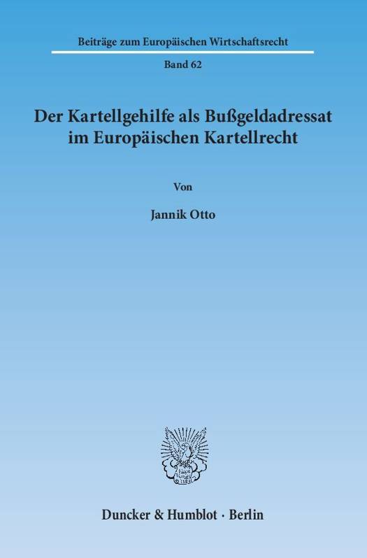 Jannik Otto untersucht die Bußgeldverantwortlichkeit von Kartellgehilfen nach europäischem Recht. Kartellgehilfen sind Unternehmen, die weder an der Kartellabsprache beteiligt sind, noch auf dem kartellierten Markt auftreten, dafür aber das Kartell etwa organisatorisch unterstützen. Zur Auslegung der bestehenden Bußgeldnormen des europäischen Kartellrechts werden zunächst die Reichweite und der Gewährleistungsgehalt des unionsrechtlichen strafrechtlichen Gesetzlichkeitsprinzips aus den Grundrechten der EMRK, GRC und als allgemeinen Rechtsgrundsatz und dem Rechtsstaatsprinzip hergeleitet. Dieses begrenzt die extensive Auslegung der unionsrechtlichen Bußgeldnormen anhand des sog. effet utile zugunsten der Rechtssicherheit. Daran ausgerichtet arbeitet der Autor die Voraussetzungen der Bußgeldverantwortlichkeit nach dem europäischen Kartellrecht heraus. Daneben werden die verwaltungsrechtliche Verantwortlichkeit und die zivilrechtliche Haftung von Kartellgehilfen behandelt.