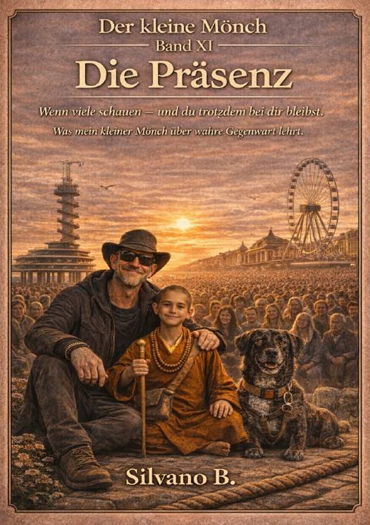 Was bedeutet es, wirklich präsent zu sein? Nicht auf einer Bühne. Nicht im perfekten Moment. Sondern im echten Leben - im Gespräch, im Zweifel, im Schweigen."Die Präsenz - Band XI" ist kein klassischer Ratgeber. Es ist ein lebendiges Gespräch. Zwischen Silvano, dem kleinen Mönch - und Slaven, dem stillen Begleiter, der oft mehr sagt, ohne ein Wort zu sprechen.Dieses Buch stellt keine Techniken vor. Es gibt keine Schritt-für-Schritt-Anleitungen, um charismatischer zu wirken oder überzeugender aufzutreten. Stattdessen geht es um etwas Tieferes: um die Verbindung von Körper, Geist und Wirkung. Um die drei Ebenen, die untrennbar miteinander verbunden sind - und die darüber entscheiden, wie wir Räume betreten, Gespräche führen und Menschen begegnen.In ruhigen Dialogen entsteht eine klare Erkenntnis: Präsenz ist kein Talent. Kein Trick. Kein äußeres Auftreten. Sie beginnt dort, wo wir aufhören, uns zu beweisen. Wo wir aufhören, Erwartungen erfüllen zu wollen. Wo wir nicht mehr kämpfen, sondern stehen.Die Gespräche führen durch Themen wie innere Aufrichtung, weicher Blick statt harter Dominanz, Wirkung ohne Absicht und die Freiheit von Bewertung. Immer wieder wird deutlich: Was wir ausstrahlen, entsteht nicht aus Technik, sondern aus innerer Ordnung. Wenn der Körper ruhig wird, wird der Geist klar. Wenn der Geist klar wird, verändert sich die Wirkung. Und wenn Erwartung vergeht, bleibt Begegnung.Slaven - der Hund - verkörpert dabei das, was wir oft verlernen: Gegenwart ohne Maskierung. Kein strategisches Verhalten. Keine Selbstinszenierung. Nur waches Dasein. Er erinnert daran, dass Stärke nicht hart sein muss. Dass Weichheit kein Zeichen von Schwäche ist. Und dass wahre Präsenz entsteht, wenn nichts mehr verteidigt werden muss."Die Präsenz" ist ein Buch für Menschen, die führen - ohne zu dominieren. Die sprechen - ohne zu drängen.