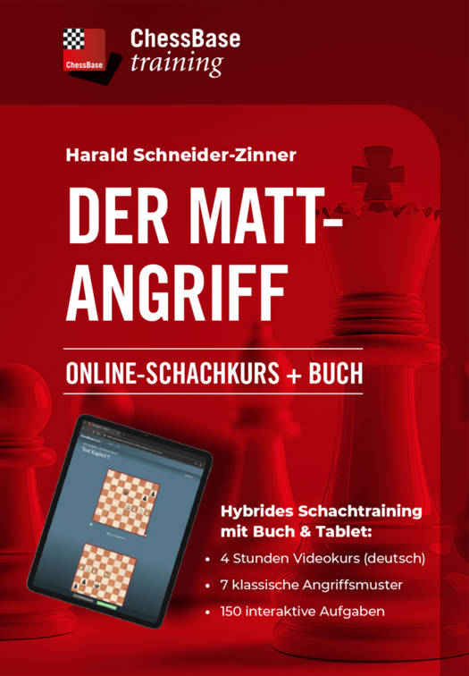 Mattangriffe sind der Höhepunkt jeder Schachpartie - der Moment, in dem Strategie auf Schönheit trifft. Doch ein erfolgreicher Mattangriff erfordert mehr als nur Kreativität: Es braucht ein Arsenal an einstudierten Mustern, die Sie erkennen, anwenden und variieren können. IM Harald Schneider-Zinner, ein renommierter Trainer, dessen Schüler Großmeister und Internationale Meister wurden, präsentiert in diesem Buch mit Videokurs die Kunst des Mattangriffs in sieben präzisen Motivgruppen - von den Grundlagen bis zum Angriff auf das Feld f7. Lernen Sie Schritt für Schritt die Geheimnisse klassischer Angriffsmotive wie das Läuferopferauf h7, das doppelte Läuferopfer, die Schwächen auf g7 und f7 sowie Grundreihenmotive kennen. Anschauliche Beispiele und interaktive Übungen garantieren Lernerfolg und Spaß. Steigern Sie Ihre Angriffsfähigkeiten und machen Sie Ihre Partien zum Erlebnis - jetzt mit diesem unverzichtbaren Training! Neu: Schachtraining mit Buch plus Onlinekurs! Im Buch erhalten Sie einen Überblick über die wichtigsten Motiv-Gruppen und testen sich mit ersten Beispielaufgaben. Mit dem eingedruckten QR-Code setzen Sie das Training auf Ihrem Tablet/iPad fort: dort können Sie interaktive Videoaufgaben lösen und bekommen viele Erklärungen!Das Buch enthält einen Freischalt-Key für den Online-Kurs (im Web-Browser)Videospielzeit: 4 Stunden 40 min150 interaktive AufgabenSYSTEMVORAUSSETZUNGEN:ChessBase books: Computer (iPad, Tablet, PC etc), aktueller Browser, Internet