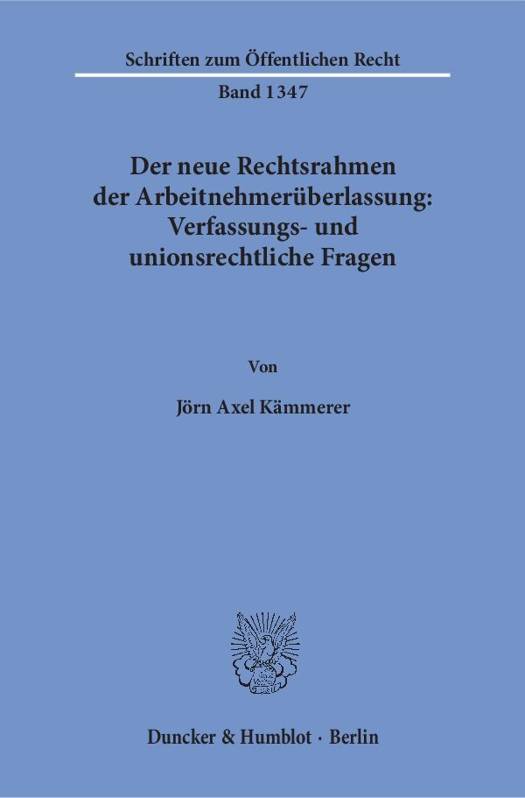 Mit der AÜG-Novelle vom 21.2.2017 hat der deutsche Gesetzgeber der Arbeitnehmerüberlassung abermals Zügel angelegt: Künftig darf ein Leiharbeitnehmer maximal 18 Monate lang beim gleichen Einsatzunternehmen tätig sein - und vom Gebot, ihn wie einen Stammarbeitnehmer zu entlohnen (Equal Pay), darf nach dem neunten Monat grundsätzlich nicht einmal durch Tarifvertrag abgewichen werden. Das Buch stellt diese Beschränkungen und auch ihre Wechselwirkungen auf den verfassungs- und unionsrechtlichen Prüfstand: Schießt der Gesetzgeber über die Verfolgung legitimer Ziele hinaus oder trägt er berechtigten Schutzinteressen Rechnung? Wie viel Koalitionsfreiheit verbleibt den Tarifparteien der Überlassungsbranche noch, wenn von der gesetzlichen Überlassungshöchstdauer nur durch Fremdtarifvertrag - der Einsatzbranche - abgewichen werden darf? Die Betrachtung schließt rechtsvergleichende Blicke auf die normative Behandlung von Arbeitnehmerüberlassung in anderen EU-Mitgliedstaaten ein.