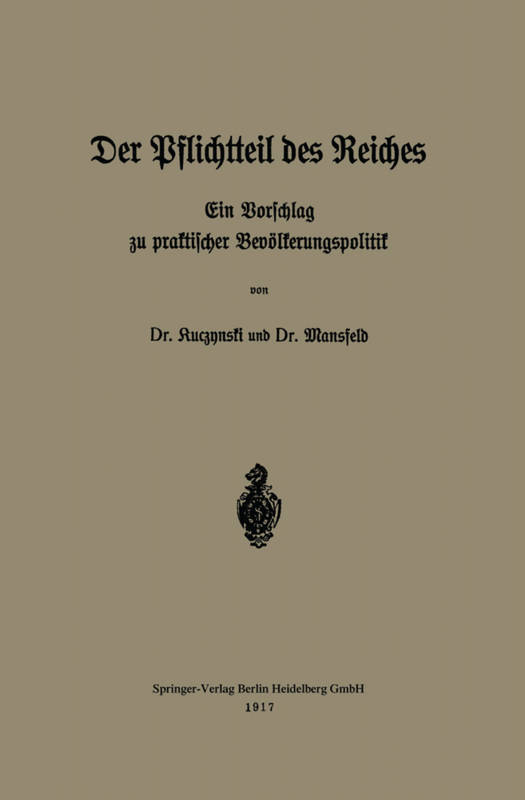 Dieser Buchtitel ist Teil des Digitalisierungsprojekts Springer Book Archives mit Publikationen, die seit den Anfängen des Verlags von 1842 erschienen sind. Der Verlag stellt mit diesem Archiv Quellen für die historische wie auch die disziplingeschichtliche Forschung zur Verfügung, die jeweils im historischen Kontext betrachtet werden müssen. Dieser Titel erschien in der Zeit vor 1945 und wird daher in seiner zeittypischen politisch-ideologischen Ausrichtung vom Verlag nicht beworben.
