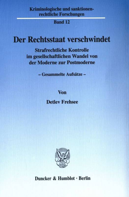 Die vorliegende Sammlung der wichtigsten Aufsätze von Detlev Frehsee macht offenbar, welchen wissenschaftlichen und menschlichen Verlust sein Tod am 29. Januar 2001 für die "Gesamte Strafrechtswissenschaft" bedeutete.