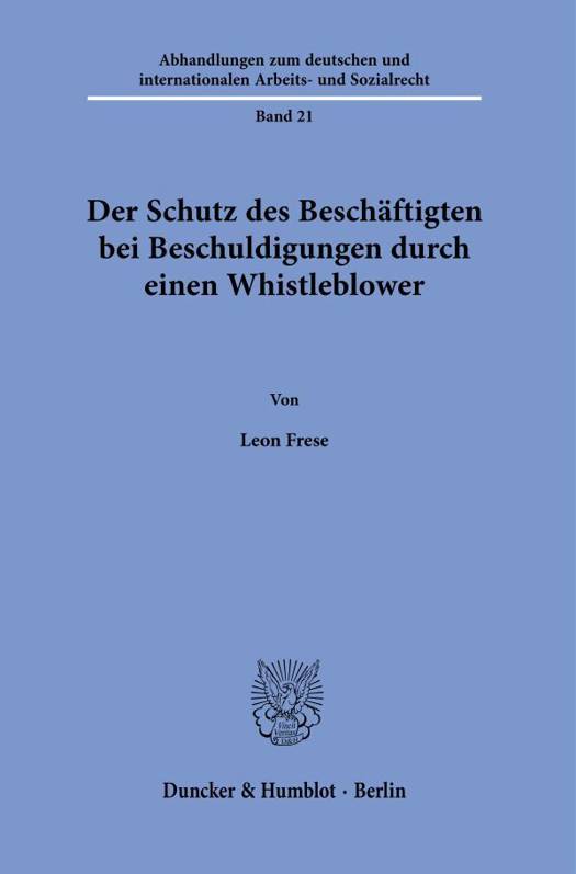 English summary: Employee protection in the event of accusations by a whistleblower This thesis focuses on the legal position of those employees who have been the target of whistleblowing allegations and who have suffered disadvantages as a result. In particular, if the content of a report is false, the question of protection arises. Claims for damages by an affected party against the whistleblower require the affected party to know the identity of the whistleblower, which makes it necessary to assert a claim for information in advance. German description: Im Whistleblowing richtet sich der Fokus meist auf einen Hinweisgeber, der einen Missstand anprangert. Haufig kommt es dabei auch zur Beeintrachtigung von Dritten - insbesondere anderen Beschaftigten -, die mittel- oder unmittelbar von einer Meldung betroffen sind. Der Fokus der vorliegenden Arbeit richtet sich daher auf die Rechtsstellung jener Arbeitnehmer, denen ein Fehlverhalten vorgeworfen wird, da sich vor allem bei Falschmeldungen die Frage nach deren Schutz stellt. Um gegen einen Hinweisgeber vorgehen zu konnen, muss ein Betroffener wissen, wer eine Mitteilung zu seinen Lasten gemacht hat. Da die Identitat eines Hinweisgebers i.d.R. geschutzt wird und dem Betroffenen unbekannt ist, stellt sich die Frage, wann ein Auskunftsanspruch erfolgsversprechend ist und gegen wen dieser zu richten ist. In diesem Zusammenhang stellt sich auch die Frage nach der datenschutzrechtlichen Verantwortlichkeit der Meldestellen, die nach dem HinSchG zwingend etabliert werden mussen.