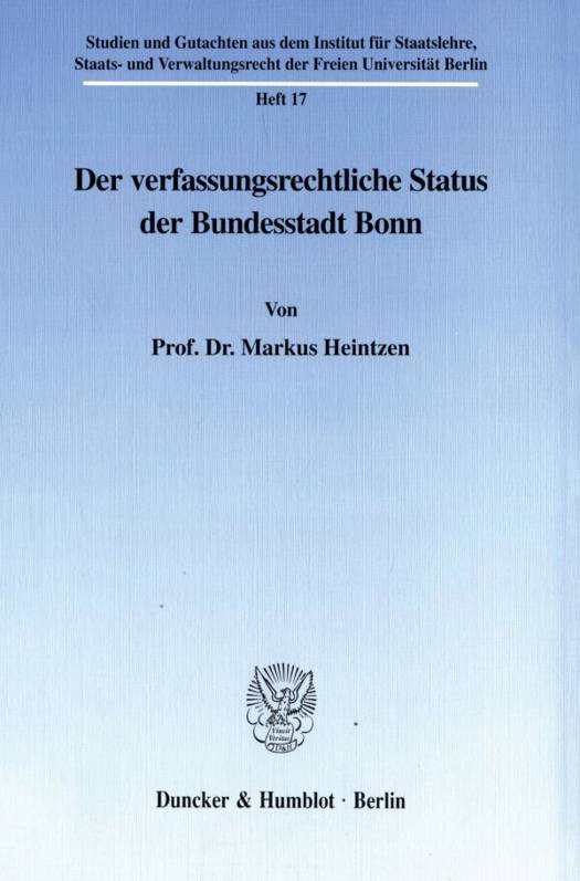 Im Mittelpunkt der Untersuchung steht die Frage, ob die Arbeitsteilung zwischen Berlin und Bonn, die in der Hauptstadtentscheidung des Deutschen Bundestages vom Juni 1990 und im Berlin-Bonn-Gesetz vom Mai 1994 vorgesehen ist, zum Nachteil der Bundesstadt Bonn geändert werden darf. Der Autor sieht sich veranlaßt, mögliche Auswirkungen mit dem Wort »Rutschbahneffekt« zu beschreiben. Der Verfasser kommt zu dem Ergebnis, daß Art. 28 Abs. 2 Satz 1 GG der Bundesstadt Bonn einen verfassungsrechtlichen Anspruch auf eine Neuorientierung nach dem Wegzug von Parlament und Teilen der Regierung auf einer gesicherten Rechtsgrundlage gibt. Dies schließt Änderungen des Berlin-Bonn-Gesetzes bis zu einer Realisierung und Evaluierung der darin vorgesehenen Arbeitsteilung aus. In einem Anhang sind der Untersuchung die wichtigsten Rechtstexte zur Hauptstadtverlegung, insbesondere die Entscheidungen von Bundestag, Bundesrat und Bundespräsident sowie eine Übersicht über die Entscheidungen der Bundesregierung beigefügt.