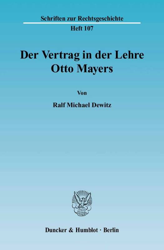 Obgleich in der deutschen Rechtswissenschaft letztmals zu Anfang des 20. Jahrhunderts die Auffassung vertreten wurde, der Begriff des "öffentlich-rechtlichen Vertrages" bilde einen Widerspruch in sich, ist diese Auffassung bis heute Bezugspunkt der wissenschaftlichen Auseinandersetzung über den Verwaltungsvertrag. Maßgeblicher Grund hierfür ist die Tatsache, daß auch der "Begründer der modernen deutschen Verwaltungsrechtswissenschaft", Otto Mayer (1846 - 1924), die Ansicht teilte, daß "wahre Verträge des Staates auf dem Gebiete des öffentlichen Rechts überhaupt nicht denkbar" seien. Da den Prämissen, die Otto Mayer zu seiner Ansicht führten, bis heute nur wenig Aufmerksamkeit geschenkt wurde, sucht Ralf Dewitz diesen Prämissen auf den Grund zu gehen.Er gelangt zu dem Ergebnis, daß Otto Mayer seine Auffassung auf seine sich gegenseitig bedingenden Begriffe vom Staat und von Methode im Recht gründete. Ralf Dewitz untersucht fernerhin, ob der Rechtswissenschaft, die jüngst aus der Annahme, daß Otto Mayer mit seiner Lehre vom öffentlich-rechtlichen Vertrage auch heute noch "irgendwie" Recht habe, eine Idee zur Bildung eines Systems der Verwaltungsvertragsdogmatik herleitet, in jener Annahme zuzustimmen ist. Der Autor bejaht dies.