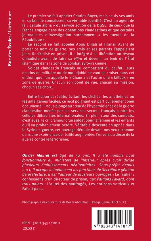 Le premier se fait appeler Charles Boyer, mais seuls ses amis et sa famille connaissent sa véritable identité. C'est un agent de la DGSE. Le second se fait appeler Abou Djilali al Firansi. Radicalisé en prison, il a intégré à sa libération un réseau djihadiste avant de devenir un émir de l'État islamique dans la zone de combat syro-irakienne. Entre fiction et réalité, évitant les clichés, les anathèmes ou les amalgames faciles, ce récit poignant est particulièrement bien documenté. Il nous plonge au coeur de l'hyperviolence de la guerre clandestine menée par les services secrets français contre les cellules djihadistes internationales.