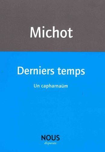 Derniers temps est un livre composite, à facettes : un journal de l'époque se tresse avec des morceaux de mémoires, en conjuguant montage (citations, extraits), moments réflexifs, éclats de présent et séquences très construites (lipogrammes, listes). Jacques-Henri Michot poursuit et amplifie ce qu'il n'a cessé d'explorer depuis Un ABC de la barbarie et Comme un fracas (Al Dante, 1998 et 2009) : une écriture alliant l'exigence de la précision des mots, des faits, des dates, à la sensibilité que soutiennent l'érudition et la passion d'un lecteur, d'un mélomane et cinéphile - d'un contemporain.