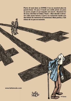 Pierre vit seul dans un EHPAD. Il ne se souvient plus de grand-chose. Un jour, il reçoit une vieille photo où pose un jeune couple et sur laquelle est inscrit « Souviens-toi de nous. Derrière la Colline. Flavie ». Bien décidé à retrouver cette jeune femme, il part à sa recherche tandis que des bribes de mémoires lui reviennent. Mais parfois, c'est mieux de ne pas se souvenir. Nostalgie et amnésie morcellent leurs souvenirs et leur histoire. Mais il faudra bien que quelqu'un ramasse les morceaux.