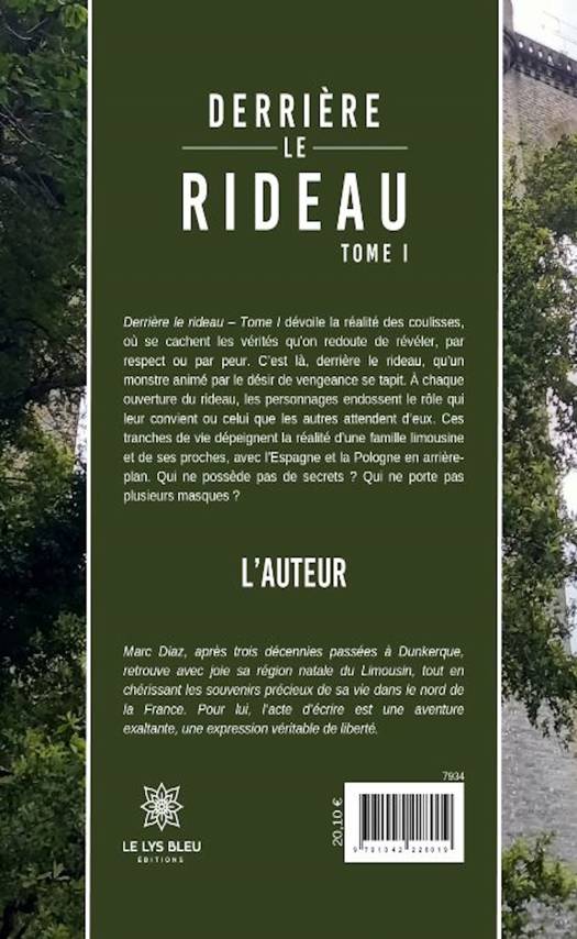 Derrière le rideau - Tome I dévoile la réalité des coulisses, où se cachent les vérités qu'on redoute de révéler, par respect ou par peur. C'est là, derrière le rideau, qu'un monstre animé par le désir de vengeance se tapit. À chaque ouverture du rideau, les personnages endossent le rôle qui leur convient ou celui que les autres attendent d'eux. Ces tranches de vie dépeignent la réalité d'une famille limousine et de ses proches, avec l'Espagne et la Pologne en arrière-plan. Qui ne possède pas de secrets ? Qui ne porte pas plusieurs masques ?