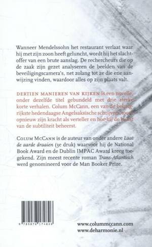 Wanneer Mendelssohn het restaurant verlaat waar hij met zijn zoon heeft geluncht, wordt hij het slachtoffer van een brute aanslag. De rechercheurs die op de zaak zijn gezet analyseren de beelden van de beveiligingscamera's, net zolang tot ze die ene aanwijzing vinden, waardoor alles op z'n plaats valt. Dertien manieren van kijken is een novelle, onder dezelfde titel gebundeld met drie sterke korte verhalen.