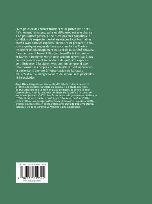 Comment imaginer un jardin nourricier uniquement composé d'un potager sans la présence d'arbres fruitiers ? Jean-Marie Lespinasse et Danielle Depierre-Martin nous proposent 14 espèces, de l'amandier à la vigne, et nous guident pas à pas dans cet ouvrage très illustré, du choix de l'arbre à la plantation, de la conduite à la récolte.