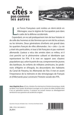 Les Forces Françaises sont restées un demi-siècle en Allemagne, sous le régime de l'occupation puis dans le cadre de la défense occidentale. Cependant, on ne sait pratiquement rien de leur histoire ni de celle des hommes et des femmes qui en ont été les acteurs ou les témoins. L'auteur, qui a vécu des années dans ce milieu, s'est penché sur le phénomène culturel et identitaire que représentent les FFA. Il met en avant l'importance de la mémoire et des témoignages de français et d'Allemands pour construire l'histoire sociale des FFA.