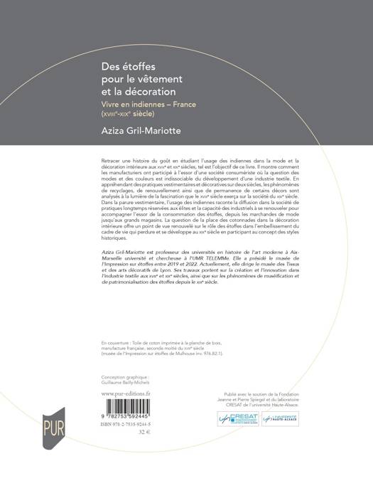 Retracer une histoire du goût en étudiant l’usage des indiennes dans la mode et la décoration intérieure aux XVIIIe et XIXe siècles, tel est l’objectif de ce livre. Il montre comment les manufacturiers ont participé à l’essor d’une société consumériste où la question des modes et des couleurs est indissociable du développement d’une industrie textile. En appréhendant des pratiques vestimentaires et décoratives sur deux siècles, les phénomènes de recyclages, de renouvellement ainsi que de permanence de certains décors sont analysés à la lumière de la fascination que le XVIIIe siècle exerça sur la société du XIXe siècle. Dans la parure vestimentaire, l’usage des indiennes raconte la diffusion dans la société de pratiques longtemps réservées aux élites et la capacité des industriels à se renouveler pour accompagner l’essor de la consommation des étoffes, depuis les marchandes de mode jusqu’aux grands magasins. La question de la place des cotonnades dans la décoration intérieure offre un point de vue renouvelé sur le rôle des étoffes dans l’embellissement du cadre de vie qui perdure et se développe au XIXe siècle en participant au concept des styles historiques.