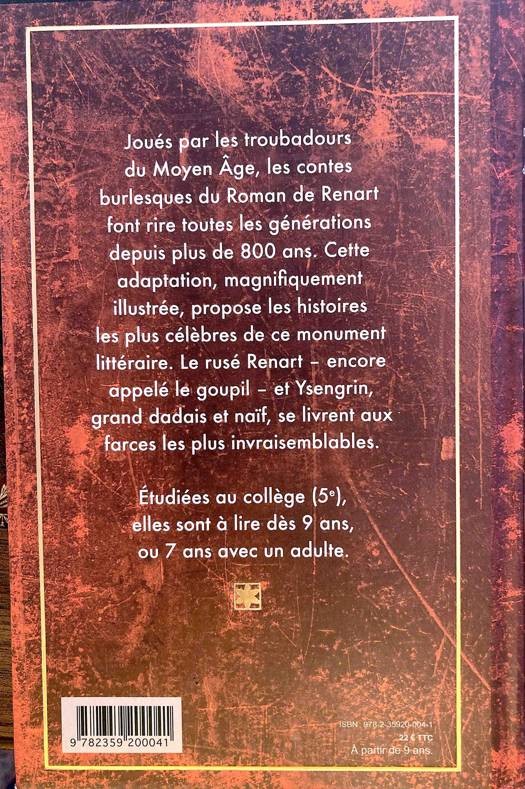 Les sept contes les plus comiques du célèbre Roman de Renart, où le rusé Goupil commet toutes sortes de mauvais coups. Son oncle, le malheureux loup Ysengrin, en fait le plus souvent les frais lors de gags toujours désopliants. Scénarisées par le texte de Jean-Sébastien Blanck, très fidèle aux versions les plus anciennes, les 50 illustrations de Jonathan Bousmar sont remarquables et mettent magnifiquement en scène le burlesque de ce chef-d'oeuvre de la littérature du Moyen âge. Le livre peut être lu à un enfant dès l'âge de 7 ans, et lu seul par un jeune lecteur dès 9 ans.