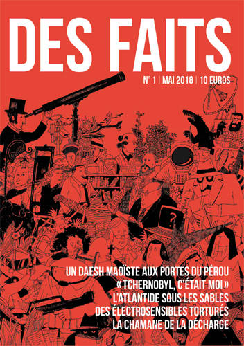 Avec tout le sérieux que cela suppose, "Des faits" entend proposer dans ses 64 pages une "vérité alternative" d'aujourd'hui inspirée des canards fantaisistes du XIXe siècle. On y trouvera entre autres un Daesh maoïste aux portes du Pérou, des atlantides en plein désert, des guérisseuses et des chamanes.