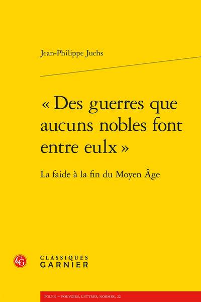 La faide de l'aristocratie laïque est une pratique sociale bien vivante à la fin du Moyen Âge, en France comme à Liège. Des groupes, comprenant des parents et des serviteurs, s'affrontent. Ils prennent hommes et biens, détruisent châteaux et récoltes. Ces opérations portent atteinte au pouvoir seigneurial de l'adversaire : la faide est, alors, une guerre seigneuriale. La naissance de l'État se traduit par une appropriation de la faide par le roi. La faide du roi devient la guerre du roi, seule guerre légitime. Ainsi, le roi se différencie du reste de l'aristocratie qui évolue en une catégorie sociale particulière, la noblesse. La faide des nobles est encadrée, criminalisée et ses normes redéfinies. La guerre seigneuriale tend à disparaître.