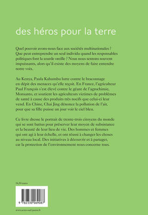 Partout sur la planète, des hommes et des femmes, citoyens ordinaires, se battent pour protéger l'environnement. Malgré les conséquences désastreuses et visibles du réchauffement climatique, leur lutte est souvent une course d'obstacles. Ils doivent surmonter l'égoïsme, l'indifférence, le mépris, la lâcheté ou la paresse de leurs concitoyens et des responsables politiques. La plupart n'ont pas d'autre choix que de défendre leur terre, leur eau, leur forêt. Leur survie en dépend. Bob Brown en Tasmanie, Chico Mendes au Brésil, Vandana Shiva en Inde, Chai Jing en Chine, Marc Ona Essangui au Gabon... Cet ouvrage, illustré avec un humour grinçant par Alain Pilon (déjà remarqué dans Riposte, comment répondre à la bêtise ordinaire), évoque les nombreuses menaces provoquées par la course au profit et l'exploitation intensive des ressources. Des exemples nécessaires.