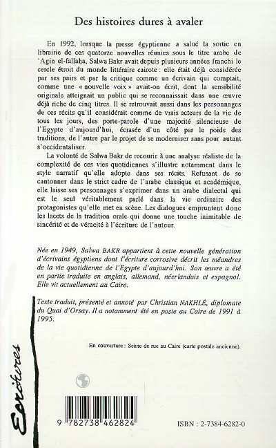 En 1992, lorsque la presse égyptienne a salué la sortie en librairie de ces quatorze nouvelles réunis sous le titre arabe d' Agin el-Fallaha, Salwa Bakr avait depuis plusieurs années franchi le cercle étroit du monde littéraire cairote : elle était déjà considérée par ses pairs et par la critique comme un écrivain qui comptait, comme une "nouvelle voix" avait-on écrit, dont la sensibilité originale atteignait un public qui se reconnaissait dans une oeuvre déjà riche de cinq titres. Les personnages de Salwa Bakr sont donc de vrais acteurs de la vie de tous les jours, des porte parole d'une majorité silencieuse de l'Egypte d'aujourd'hui, écrasée d'une part par le poids des traditions et d'autre part par une volonté de se moderniser sans pour autant s'occidentaliser.
