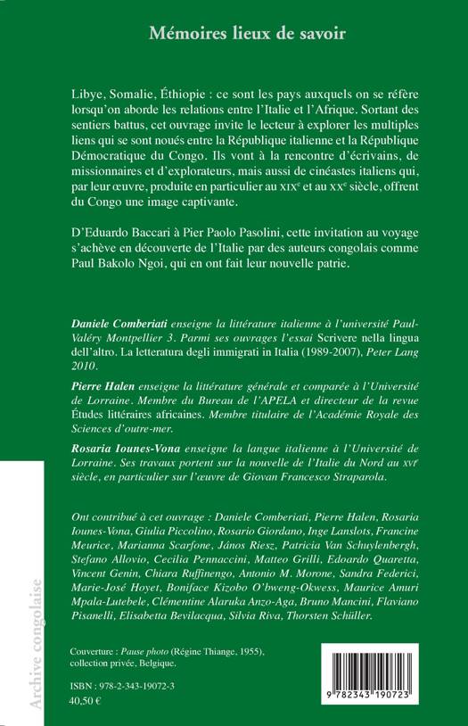 Libye, Somalie, Éthiopie : ce sont les pays auxquels on se réfère lorsqu'on aborde les relations entre l'Italie et l'Afrique. Sortant des sentiers battus, cet ouvrage invite le lecteur à explorer les multiples liens qui se sont noués entre la République italienne et la République Démocratique du Congo. Ils vont à la rencontre d'écrivains, de missionnaires et d'explorateurs, mais aussi de cinéastes italiens qui, par leur oeuvre, produite en particulier au xixe et au xxe siècle, offrent du Congo une image captivante.