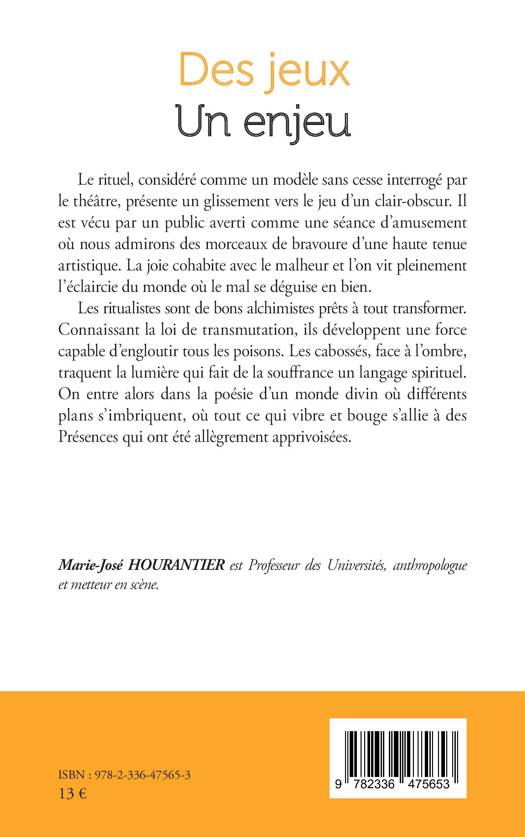 Le rituel, considéré comme un modèle sans cesse interrogé par le théâtre, présente un glissement vers le jeu d'un clair-obscur. Il est vécu par un public averti comme une séance d'amusement où nous admirons des morceaux de bravoure d'une haute tenue artistique. La joie cohabite avec le malheur et l'on vit pleinement l'éclaircie du monde où le mal se déguise en bien.