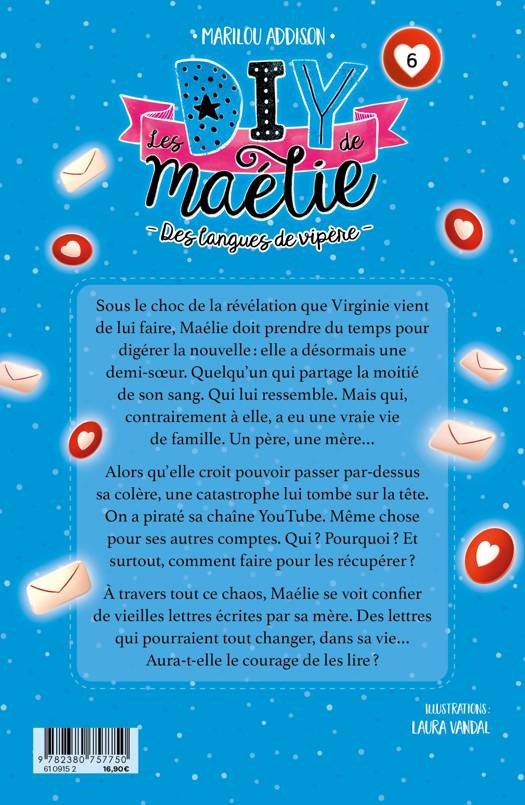 Sous le choc de la révélation que Virginie vient de lui faire, Maélie doit prendre du temps pour digérer la nouvelle: elle a désormais une demi-soeur. Quelqu'un qui partage la moitié de son sang. Qui lui ressemble. Mais qui, contrairement à elle, a eu une vraie vie de famille. Un père, une mère... Alors qu'elle croit pouvoir passer par-dessus sa colère, une catastrophe lui tombe sur la tête. On a piraté sa chaîne YouTube. Même chose pour ses autres comptes. Qui? Pourquoi? Et surtout, comment faire pour les récupérer? À travers tout ce chaos, Maélie se voit confier de vieilles lettres écrites par sa mère. Des lettres qui pourraient tout changer, dans sa vie... Aura-t-elle le courage de les lire?