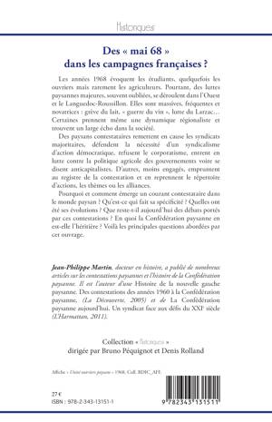Les années 1968 évoquent les étudiants, quelquefois les ouvriers, mais rarement les agriculteurs. Pourtant, des luttes paysannes majeures se déroulent dans l’Ouest et le Languedoc-Roussillon. Elles sont massives, fréquentes et novatrices : grève du lait, guerre du vin, etc... Des paysans contestataires remettent alors en cause les syndicats majoritaires et défendent la nécessité d’un syndicalisme d’action démocratique. Pourquoi et comment émerge un courant contestataire dans le monde paysan ? Que reste-t-il aujourd’hui des débats portés par ces contestations ?