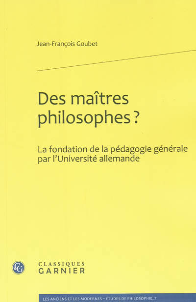 Quelle est la part philosophique de l'identité professorale ? Le présent ouvrage s'attache à traiter cette question, toujours d'actualité, par un retour à ses sources. C'est dans l'Université allemande du XVIIIe siècle que naît la réflexion sur la formation philosophique des enseignants. Un maître est-il uniquement un savant ou doit-il développer une compétence de professeur et d'écrivain ? Lui faut-il posséder un plan idéal en officiant ou son affaire est-elle tout empirique ? En se pensant comme rectrice de tous les enseignements supérieurs puis en fondant une pédagogie générale, discipline traitant ensemble instruction et éducation, la faculté de philosophie a su, de Wolff à Herbart via Kant, répondre avec précision à ces interrogations.
