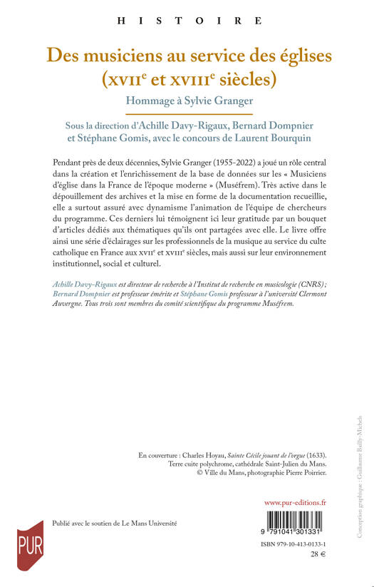 Pendant près de deux décennies, Sylvie Granger (1955-2022) a joué un rôle central dans la création et l’enrichissement de la base de données sur les « Musiciens d’église dans la France de l’époque moderne » (Muséfrem). Très active dans le dépouillement des archives et la mise en forme de la documentation recueillie, elle a surtout assuré avec dynamisme l’animation de l’équipe de chercheurs du programme. Ces derniers lui témoignent ici leur gratitude par un bouquet d’articles dédiés aux thématiques qu’ils ont partagées avec elle. Le livre offre ainsi une série d’éclairages sur les professionnels de la musique au service du culte catholique en France aux XVIIe et XVIIIe siècles, mais aussi sur leur environnement institutionnel, social et culturel.