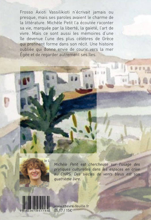 Frosso Axioti Vassilikioti n’écrivait jamais ou presque, mais ses paroles avaient le charme de la littérature. Michèle Petit l’a écoutée raconter sa vie, marquée par la liberté, la gaieté, l’art de vivre. Mais ce sont aussi les mémoires d’une île devenue l’une des plus célèbres de Grèce qui prennent forme dans son récit. Une histoire oubliée qui donne envie de courir vers la mer Égée et de regarder autrement ses îles