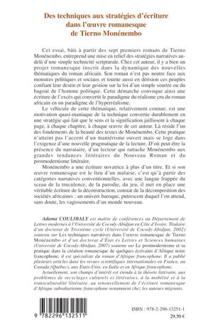 Cet essai, bâti à partir des sept premiers romans de Tierno Monénembo, entreprend une mise en relief des stratégies narratives au-delà d'une simple technicité scripturale. Son roman n'est pas neutre face aux monstres politiques et sociaux et tourne aussi en dérision ces peuples confiant leur destin et leur gestion sur la foi d'un simple sourire ou du bagout de l'homme politique. Cette démarche convoque ainsi une écriture de l'excès qui convertit le paradigme du réalisme cru du roman africain en un paradigme de l'hyperréalisme.
